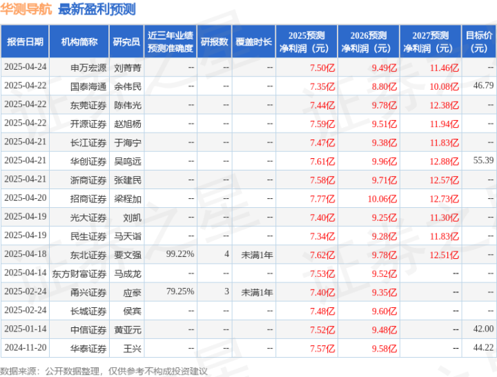 最新盈利预测明细如下: